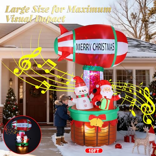 10FT Christmas Inflatables Santa Claus Outdoor Decorations, Christmas Blow Ups Airship Snowman, Inflatable Yard Decor with Built-in LED Lights for Xmas Garden Lawn Party