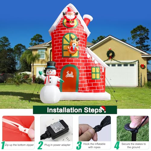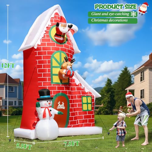 ?????Eye-catching Christmas decoration?: This huge 12-foot-high inflatable Christmas house makes your home a hot topic in the neighborhood during this holiday season. This inflatable has a lot of Christmas elements: a snowman waving goodbye, reindeer holding gifts, and a cute Santa Claus reaching out his hands from the windowsill. It will be welcomed by everyone who sees it. Add this delightful decoration to your Christmas holiday collection today!