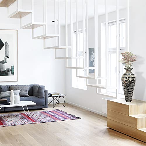 This vase will compliment decorating styles such as Bohemian modern, contemporary and elegant as well as other styles with similar color schemes. It can be used as a floor vase or placed on bookshelves, a parsons table in the entryway or hallway, on the dresser in the bedroom and on occasional tables in the living room. It can used to display dried flowers, leaves or decorative feathers and will also be beautiful on its own as a glistening accent piece.