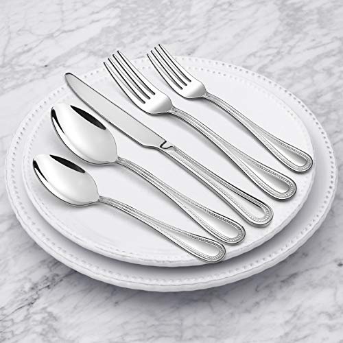 20-Piece Silverware Set, HaWare Stainless Steel Flatware Service for 4, Pearled Edge Tableware Cutlery Include Knife/Fork/Spoon, Beading Eating Utensil for Home, Mirror Polished, Dishwasher Safe