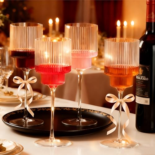 Premium Wine Glasses - Elevate your drinking experience with our wine glasses. Featuring a sleek ribbed design and an elegant stem, these plastic wine cups embody sophistication. The crystal-clear bowl accentuates the vibrant hues of white wine, red wine and cocktails, while the elongated stem not only adds to its delicate aesthetic but also provides a secure grip. This design promotes optimal airflow around the wine, allowing you to fully appreciate its complex aromas and flavors, for an unforgettable tasting experience.