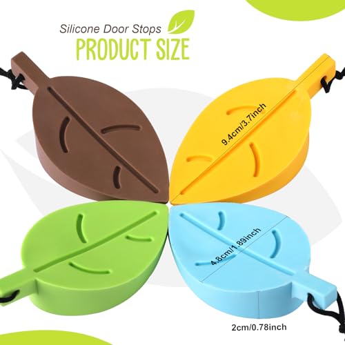 4Pcs Door Stopper Wedge Finger Protector, HNYYZL Silicone Door Stops, Cute Colorful Cartoon Leaf Style Secure Flexible Decorative Finger Protector, for Home and Office(Green, Yellow, Blue, Brown)
