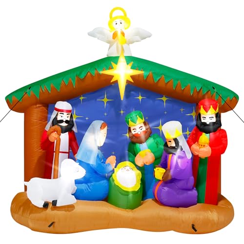8FT Christmas Inflatables Nativity Scene, Blow Up Christmas Nativity Scene, LED Lighted The Birth of Jesus Scene Inflatables Decor, Christmas Outdoor Inflatable Decorations for Xmas Yard Lawn Patio