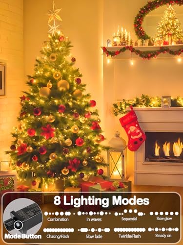 Unique 8 Lighting Modes: This twinkle lights have 8 modes to fit different occasions, moods, feelings, holidays, festivals, anniversaries, etc. (Combination, In waves, Sequential, Slow Glow, Chasing/Flash, Slow fade, Twinkle/Flash, Steady on). Adjust the lighting modes by pressing the round button on the adapter.