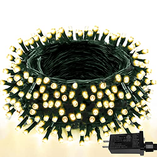 Upgraded LED String Lights Indoor Outdoor: Super bright with new upgraded LED bulbs. The 300 LED warm white green wire plug in string lights have 8 lighting modes to satisfy your diverse decorative effect. Total length is 115ft, of which 99ft with lights.