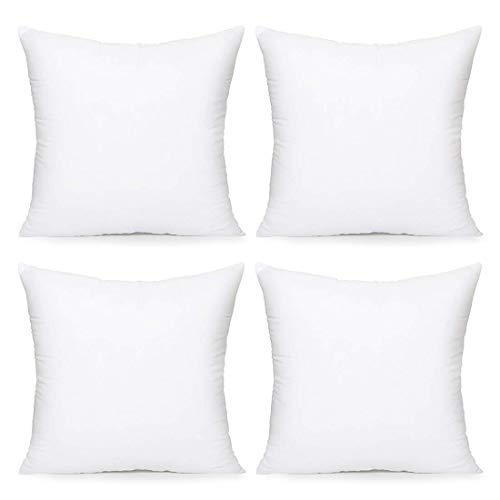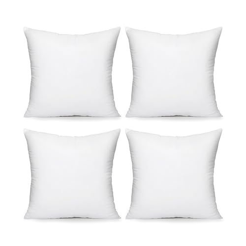 Acanva Throw Pillow Inserts Decorative Stuffer Soft Hypoallergenic Polyester Couch Square Form Euro Sham Cushion Filler, 20"-4P, White 4 Count