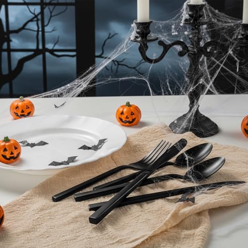 DESIGN AND APPEARANCE: Classic square handle shape with satin finish, natural and elegant design.Smooth and silk surface without grain, easy to clean and care in daily use. Crafted forged process, strong and durable?so that the flatware set has a thicker texture