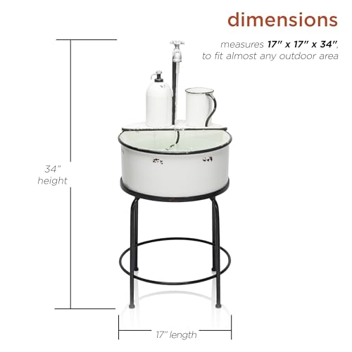 OUTDOOR GARDEN DECOR: Vintage style white enamel metal sink fountain floor statue with old fashioned water spicket gives a retro feel and will add timeless charm to your outdoor living space or yard