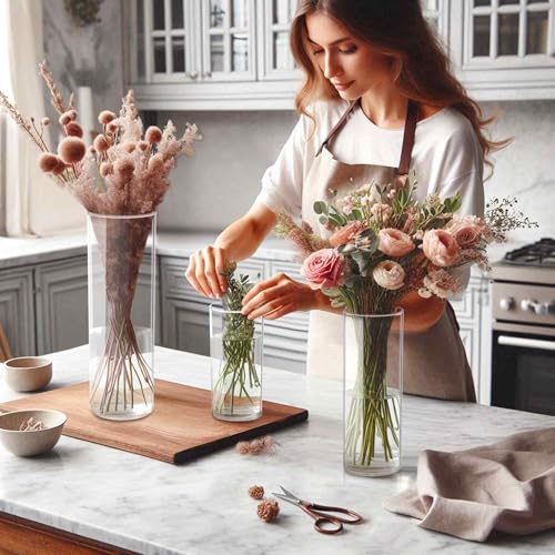 Amazing Abby - Viola Magra - Acrylic Cylinder Vases (3-Piece Set), Plastic Cylindrical Flower Vases for Wedding Centerpieces, Home Decorations, Office Ornaments, Shatter-Proof, 6" + 9" + 12" (H)