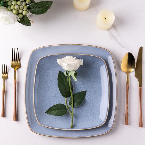 MODERN DESIGN WITH HAND CRAFTED: These dinnerware set feature a clear, reactive glaze finish. Each piece with handcrafted decorative is beautifully individual, adding a touch of sophistication to your table setting. it is perfect for daily using and special occasion.
