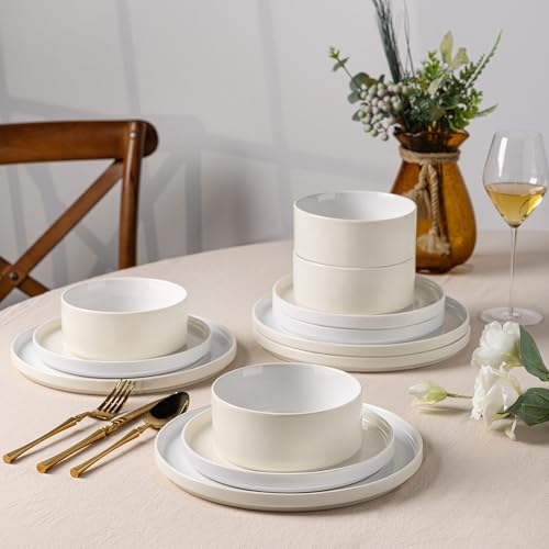 WHAT WILL YOU RECEIVE: 12 pieces dinnerware sets includes 4 x 10.25 inch dinner plates,4 x 8.25 inch salad plates and 4 x 24 oz cereal bowls, Ideal for small families, couples, or individuals, this 4-place settings dish set perfectly meets your dining needs.