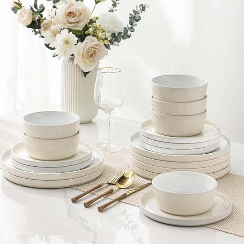 ELEGANT AND MODERN:Our dinnerware set features a unique design with two different glazes. The surface of the plates is white, while the edges and the bottom cover are adorned with another beautiful color. This plate and bowl set will make your dining table look more elegant and modern, enhancing the appearance and enjoyment of your meals. Perfect for housewarmings, Thanksgiving, Christmas, and other festive celebrations.
