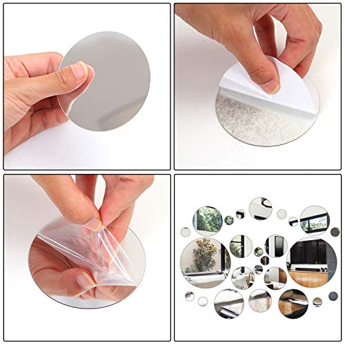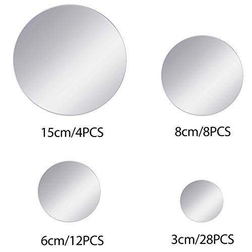 Aneco 52 Pieces Flexible Mirror Wall Stickers Set Removable Acrylic Mirror Circle Self Adhesive Plastic Mirror Decal for Home Decor