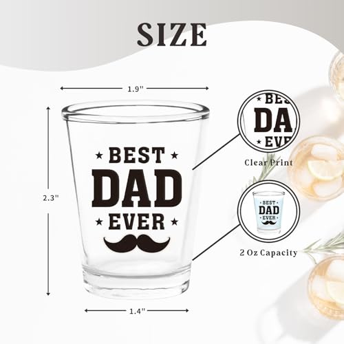 HIGH-QUALITY MATERIAL - Made from premium glass, each shot glass is designed to be durable and long-lasting, ensuring dad can enjoy his favorite drinks in style. These 2oz shot glasses are perfect for toasting to your dad's greatness.