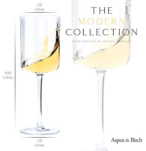 ? EXQUISITE GLASSES FOR WINE LOVERS - Overwhelm your senses with the pairing of fine wine and the modern design of these stunning glasses by Aspen & Birch. Stylish, classy, and strikingly clear - A large cylindrical bowl and long graceful stem elegantly show off a lovely rose, white, or red wine. This is not your average wine glass! A stemless wine glass changes the temperature of the wine by the heat of your hand - order a sturdy and stemmed glass, and savor your vino the way it was intended!