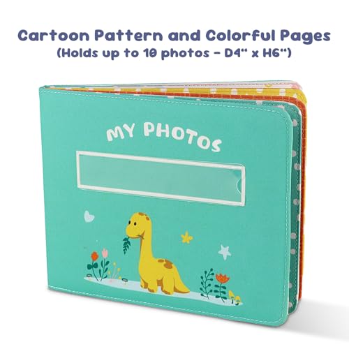 Baby’s My First Photo Album of Dinosaur Theme, Soft Cloth Photo Album with Color Pages for 10 Pictures 4x6 inch