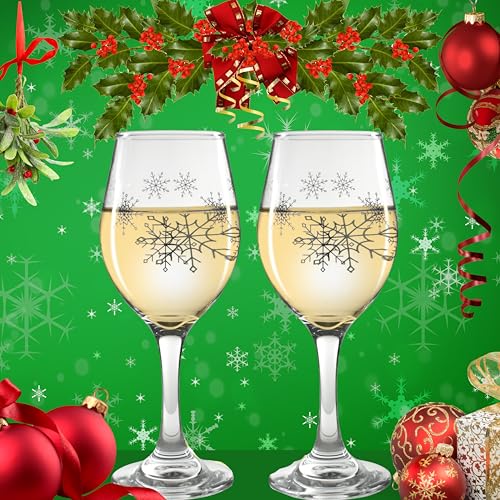 SILVER SNOWFLAKE DESIGN: Beautiful snowflakes adorn this set of wine glasses making them perfect for a winter wedding, or a Christmas holiday gathering.