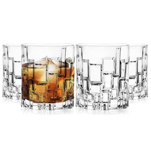 Barski Whiskey Glasses - Double Old Fashioned Rocks Glass - Set of 4 Lowball Tumbler - DOF Crystal Glass Tumblers - For Scotch - Bourbon - Water - Beverage - Drinking Glasses - 11 oz - Made in Europe