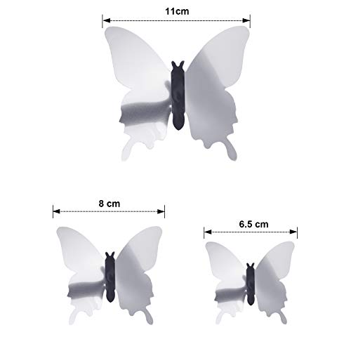 What you can get: 1 set of mirror butterfly wall decals includes 4 pack of large (11 cm), 8 pack of middle (8 cm) and 36 pack of small (6.5 cm), 48 pieces of butterfly in total