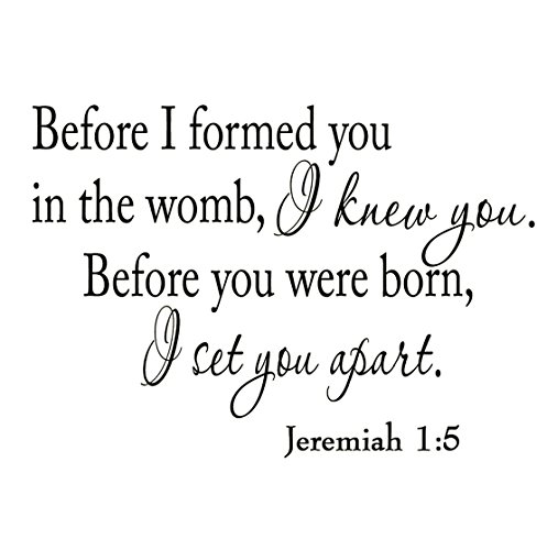 Before I formed you in the womb I knew you. Before you were born, I set you apart. Jeremiah 1-5 Vinyl Wall Art Religious Home Decor Bible Scripture Quote Nursery Wall Decals