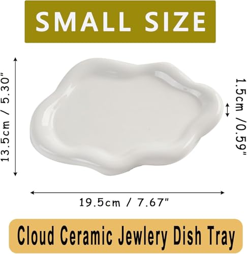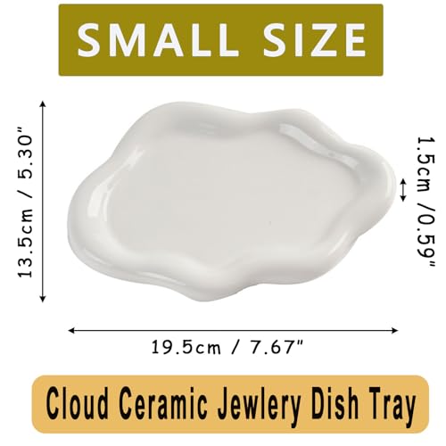 ?Elegant Unique Cloud Design?Cloud jewelry holder adopts a unique irregular cloud-shaped design, with rounded and smooth glazed edges, which is delicate and textured and feels more comfortable in the hand. but also protect your table from scratches. Helps organize and protect your jewelry and desk small items. Jewelry dish makes your desktop more organized, adds a touch of aesthetics to your bathroom or bedroom space.