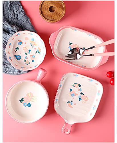 This ceramic dinnerware set includes: 1 PCS 9 inch baking plate, 1 PCS 8 inch baking Bowl, 2 PCS 5 inch dessert bowls.