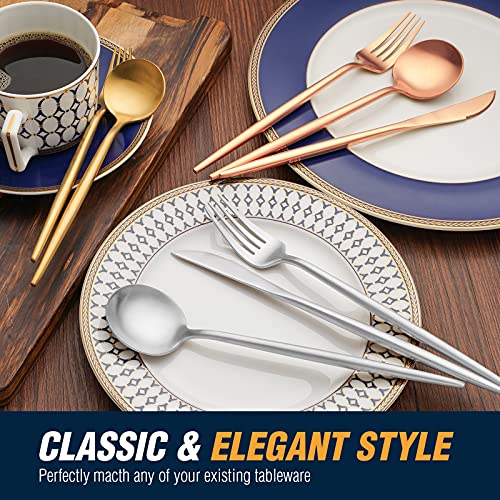 ?Mulit-application?Sturdy kitchen silverware sets are perfect for any formal or informal occasions, such as home, restaurant, hotel, Suitable for wedding, traveling, camping, party, catering, Also as a good gift for family and friends.