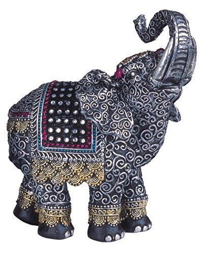 Black Thai Elephant with Trunk Raised Collectible Figurine Statue