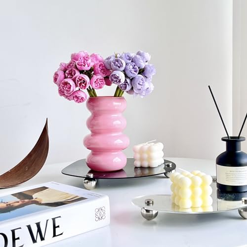 ?Unique Design?- The pink glass vase is designed to enhance the beauty of your home décor. It combines the elements of waves and bubbles. It adopts a four layer circular stacking design, which breaks the dull feeling and adds a touch of elegance to any space.It is a good choice to use alone or to use in sets with multiple colors. Create a space aesthetic and pleasant living environment.