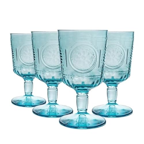 Bormioli Rocco Romantic Stemware Glass, Set of 4, 10.75 oz, Light Blue