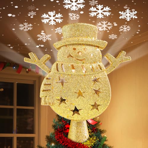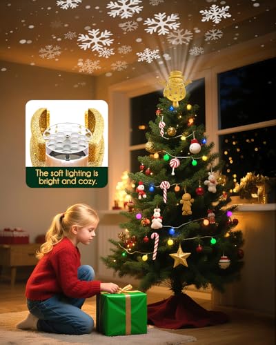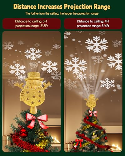 ?Adds Christmas Atmosphere?This tree topper with projector is a great choice for completing your Christmas tree decoration. It can be used as a Christmas tree topper, table centerpiece, or ceiling accent, and is suitable for Christmas, weddings, and everyday home décor. With this sparkling projector tree top light, your home will be filled with warmth and charm.