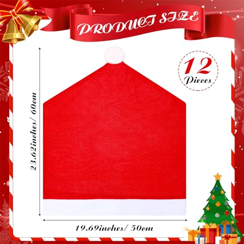 Package List: the package contains 12 pieces of red chair covers in Christmas red hat design, sufficient quantity is enough to meet your needs for using, decorating, and sharing, enlivening the holiday atmosphere, provoking a delightful feeling of nostalgia amongst the users