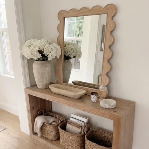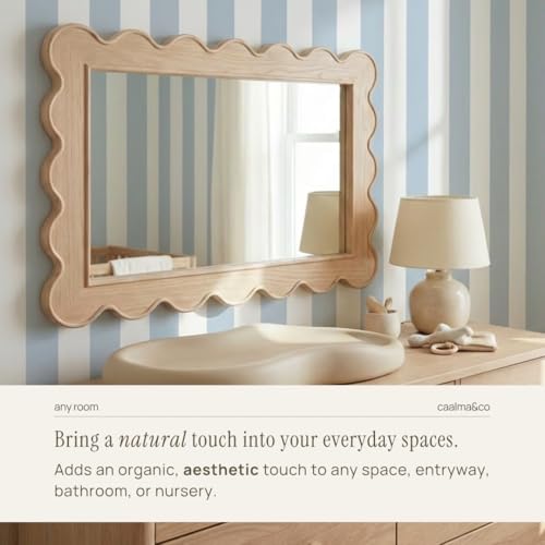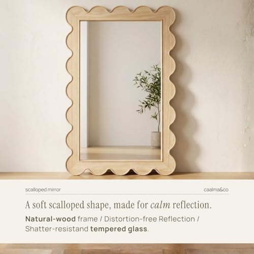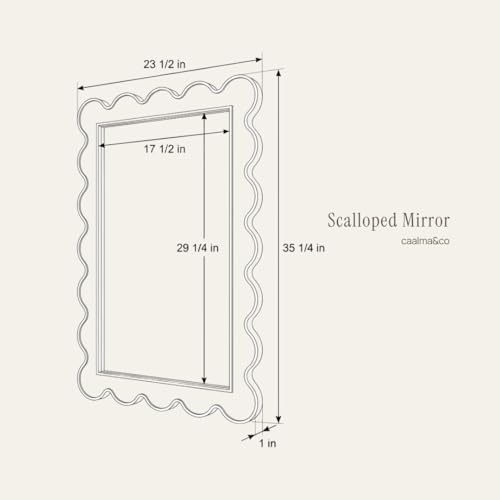 CAALMA Scalloped Wall Mirror 24 x 36 Rectangular, Bathroom Mirror, Mirrors for wall Decor, Wooden Frame Mirrors for wall, Decorative Vanity Mirror, Nursery Decor, Entryway Mirror, Wall Mounted Mirror