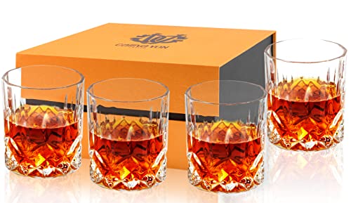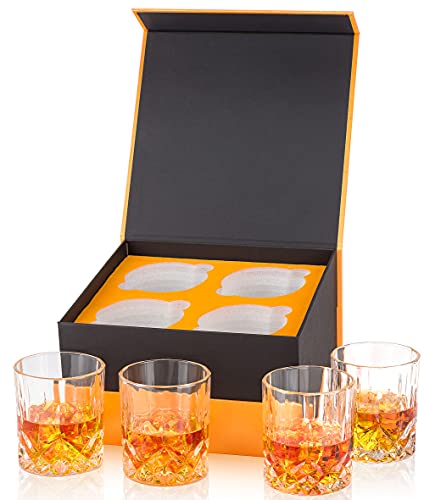 calliva von Crystal Whiskey Glass, Set of 4 Old Fashioned Bourbon Glasses In Gift Box. Best Rocks Tumbler for Scotch Irish Whisky Cocktail Drinking, 10oz