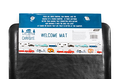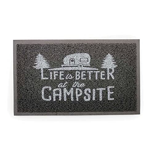 Camco Life Is Better at The Campsite Outdoor & Indoor Welcome Mat - Weather and Mildew Resistant Doormat | Traps Dirt and Liquid | Spongey Comfortable Feel | Measures 26 ½ " x 15" - Gray (53200)