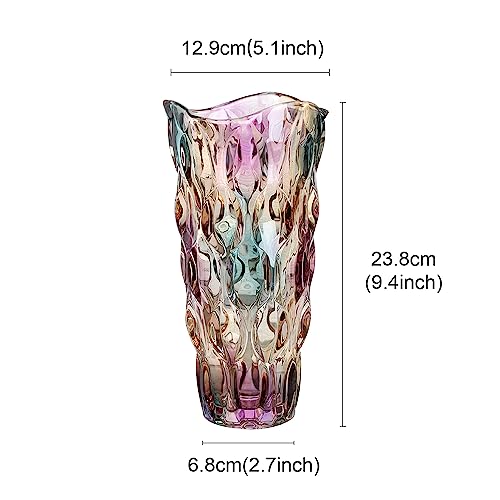 ??Vases for Flowers?This glass vase makes your flowers more beautiful?Four unique colors to choose from in the vase and can meet different flower arrangement needs, suitable for all kinds of flowers, tulips, roses, calla lilies..Beautiful decoration for living room, dining room table, entryway, mantle, shelf, coffee table, fireplace and porch.