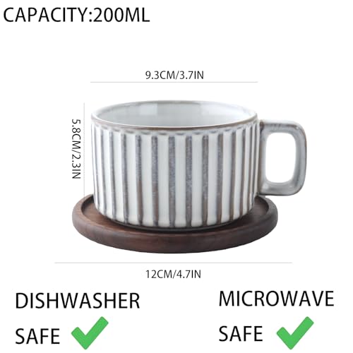 Ceramic Coffee Tea Cup with Natural Black Walnut Wood Saucer, Elegant Coffee Mug Set, Kiln Transformation Mug (White, Cup & Saucer)