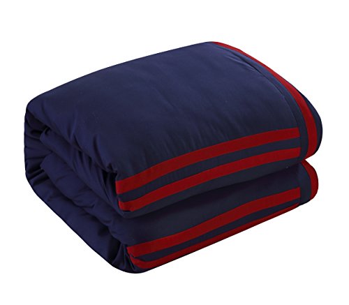 Chic Home Zarah 10 Piece Comforter Set Complete Bed in a Bag Pieced Color Block Banding Bedding with Sheet Set and Decorative Pillows Shams Included, Queen Navy