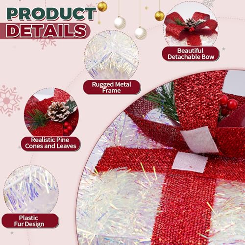 Wide Application: Outdoor Christmas decoration gift boxes are suitable for various settings; They can be used to decorate Christmas trees, front doors, living rooms, fireplaces or cabinets, and even come in handy for weddings or other occasions