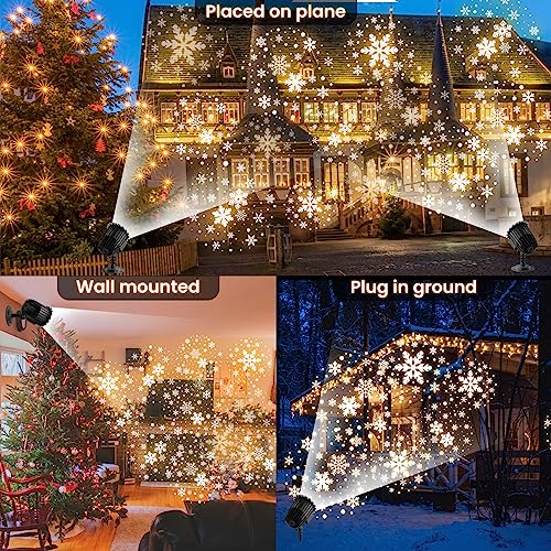 ? Enhanced Coverage: The upgraded 2023 snowflake lamp shines at 9W, providing twice the brightness of regular 5W lamps. It projects realistic snowflake effects over a wider area with greater brightness. Experience stunning storm-like snowflake displays with the fusion of 'Large Snowflake' + 'Small Snowflake' + 'Snow Dots'.