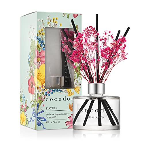 EASY SCENT CONTROL AND LONG-LASTING FRAGRANCE - Elegant glass bottles are 6.7 oz with reed sticks and real preserved flower included. You can choose to add or remove the number of reed sticks to match your taste. It takes 1 or 2 days for the fabric sticks to soak in the scent. When the fragrance weakens, simply turn the reed sticks upside down or replace them with new ones.