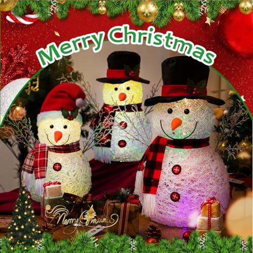 Christmas Snowman Decor: Our set of snowman doll is a perfect addition to your home holiday decorating, it will provide a joyous and festive atmosphere. The size of snowmen are 13.4" and 16.4" .
