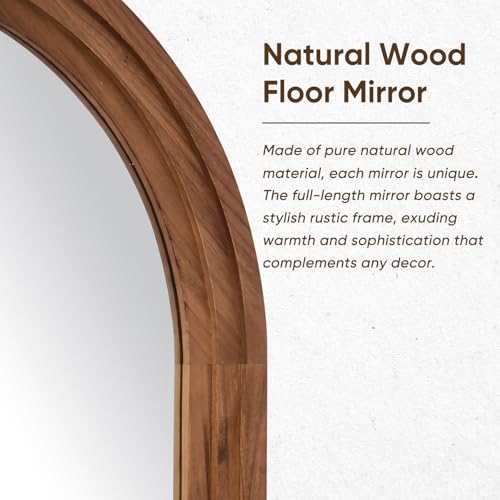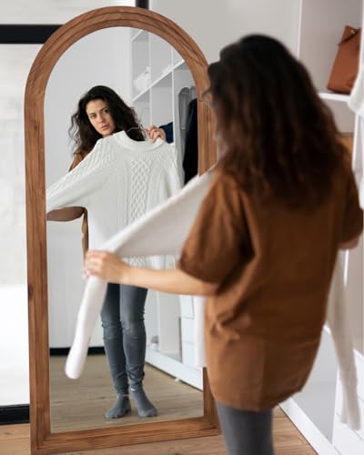 Coomily Full Length Mirror, 76"×34" Wooden Mirror Full Length with Stand Wood Floor Mirror, Oversized Stand Up Mirrors Large Wall Mirrors, Wall Mounted Mirrors, Arched Vintage Style, Browm