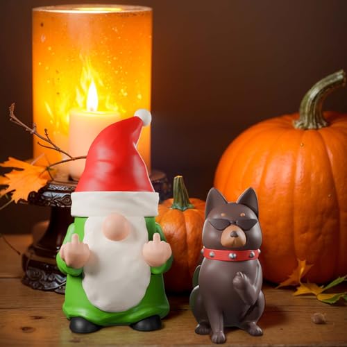 CUNTAUK Funny Gnome Ornament Middle Finger Garden Gnomes Statue, Mini Weird Unusual Christmas Ornaments for Garden Yard Outdoor Lawn Home Decor and Gnome Gifts