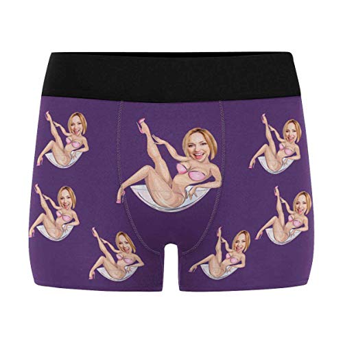Customized Mens Boxer Briefs with Wife's Face Goblet Purple XXL