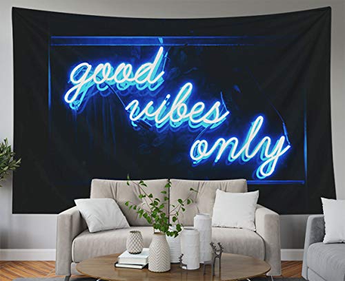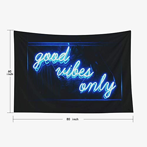 Decorative Wall Tapestry,Musesh Good Vibes Only Words in Neon Light for Bedroom Living Room Outdoor 80X60 Inch