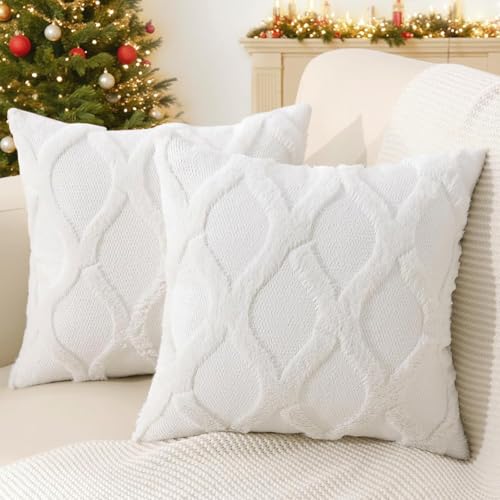 SOFT and PLUSH: The fluffy faux fur Christmas pillow covers are super soft on both sides. The front of the couch pillow covers is made of cozy short wool, while the back is silky hand-feel velvet, soft to touch