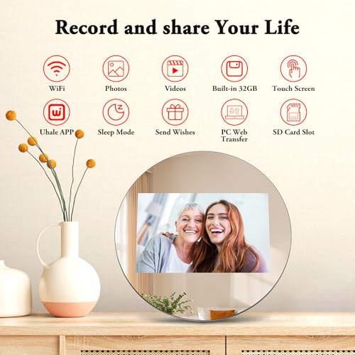 Innovative Two-in-One Beauty&Tech : This sleek 11.5 inch digital mirror transforms flawlessly. Use it as your everyday vanity mirror when off. Switch it on, it instantly becomes a vibrant digital picture frame, showcasing your favorite photos and videos. Perfectly sized for your desk, vanity, or mounted on the wall as chic room decor – it effortlessly elevates your space and daily routine.It’s a perfect gift for mom, wife and girlfriend on holidays such as Birthday, Valentine's Day, Mother's Day,Christmas, Thanksgiving