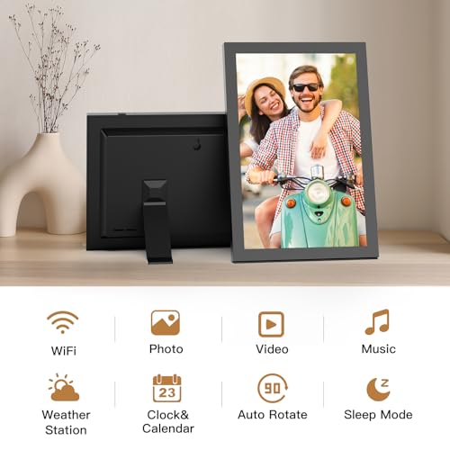 [Sleek Design, Stylish Decor]: The 10.1-inch electronic picture frame auto adjusts image orientation based on screen position, whether in portrait or landscape mode. This smart digital picture frame provides an elegant home decor option for any style. Ideal for enhancing the decor of your living room, bedroom, or office. Show your happy moments anywhere using the digital frame.