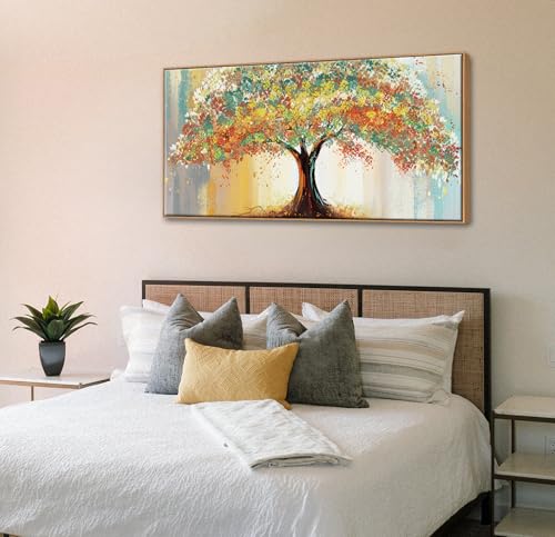 ?Easy to Hang & Premium Quality?- This colorful tree artwork is made of premium canvas material to ensure durability and water resistance. High-quality canvas is stretched on a solid wooden frame, which increases the texture and class of the picture, making the entire picture more stable and elegant. Metal hanging hook is already attached to the frame, ready to hang, please properly measure your walls before purchasing.